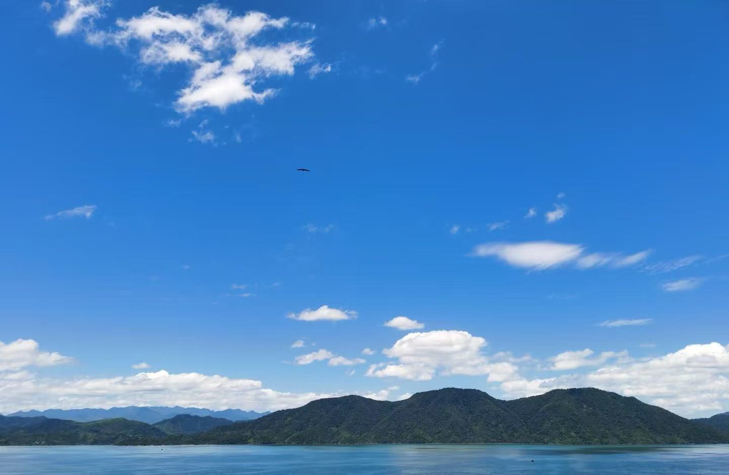 Golden Island: Green plants and hills that look like "Eighteen Arhats."
