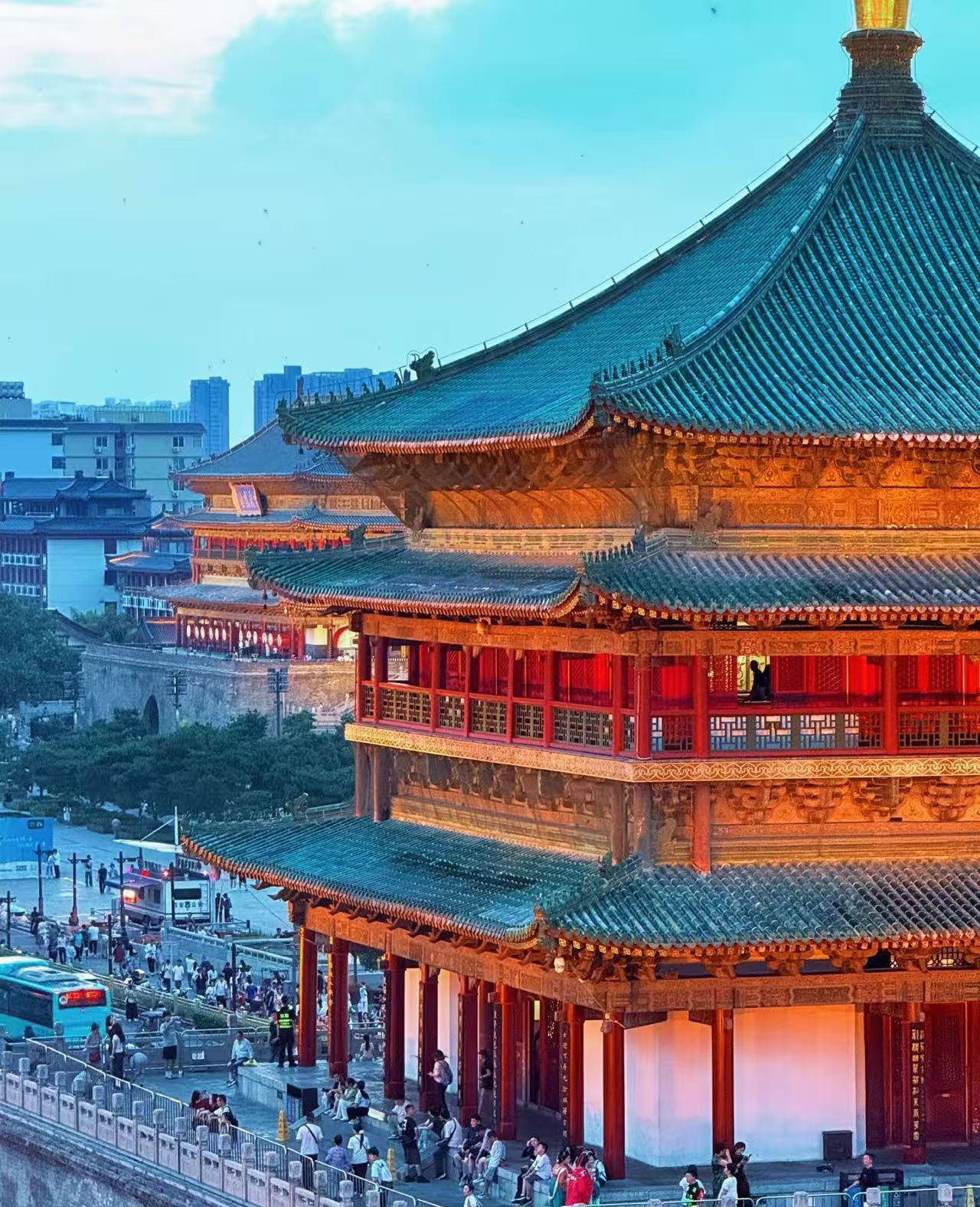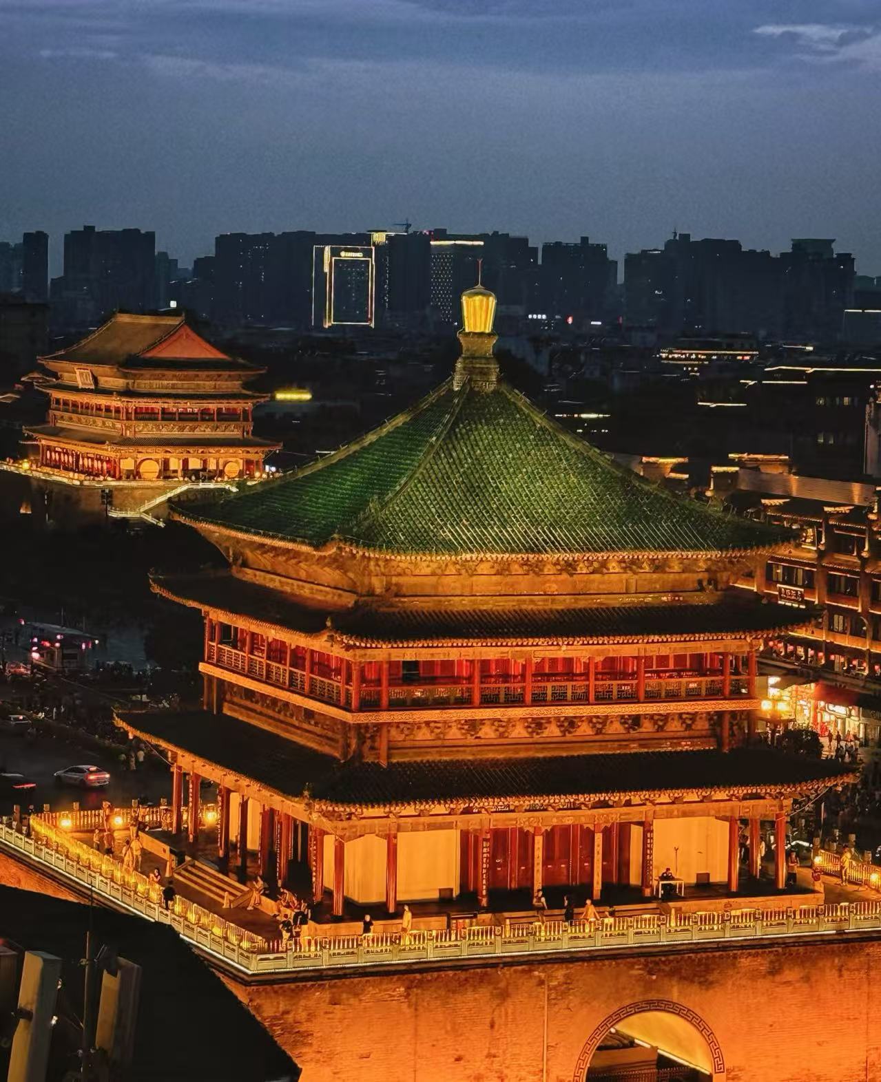 Evening: The towers light up after sunset. The bell tower glows, and the drum tower hosts lively shows. You’ll see the city sparkle from above. Evening visits feel magical and give you a florid view of Xi'an’s heart.