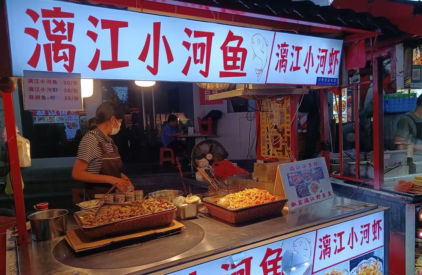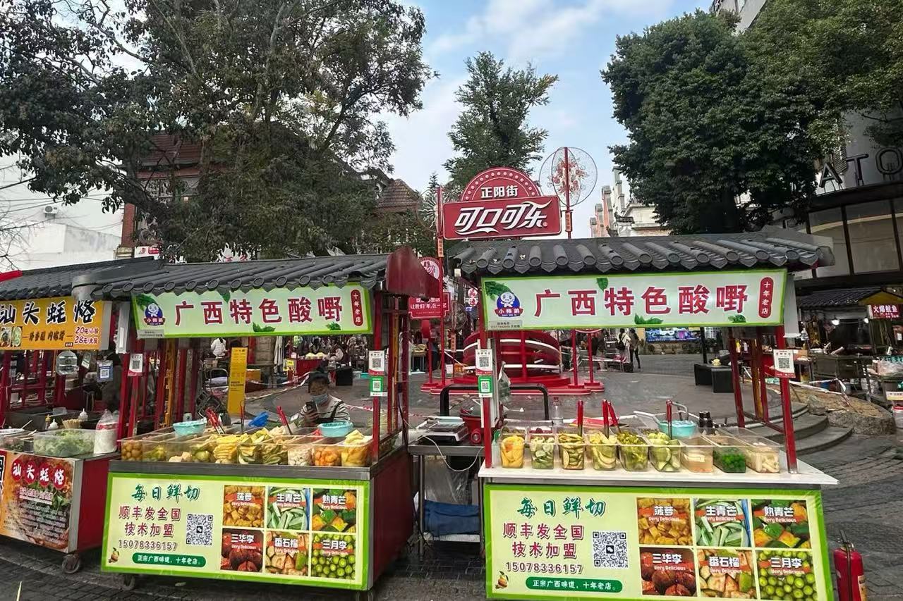 Snack stalls fill the market with the smell of chili-spiced mango slices and sweet osmanthus jelly.