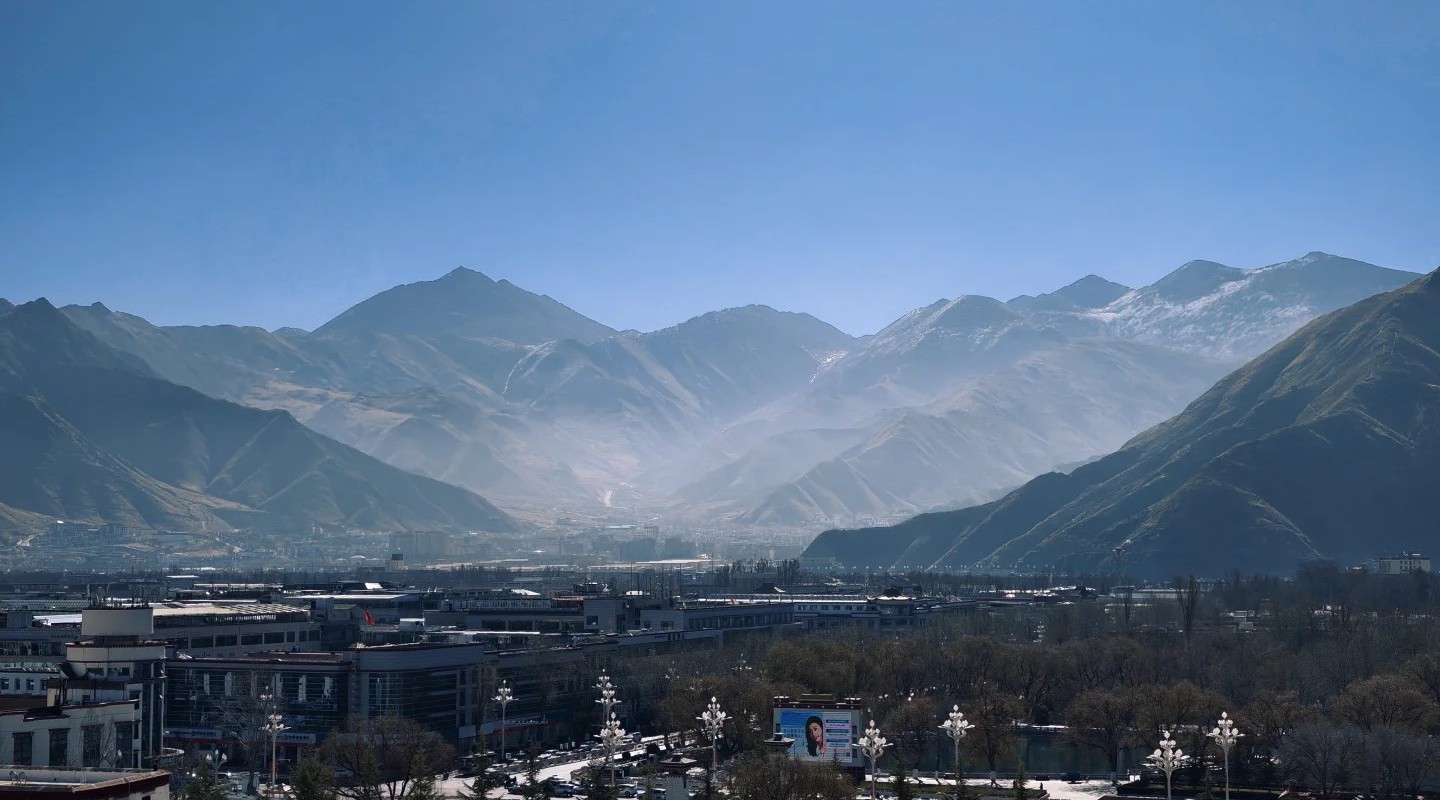 Chakpori hill gives you sunrise and sunset views of the Potala Palace. You see the palace with the city and mountains in the background.