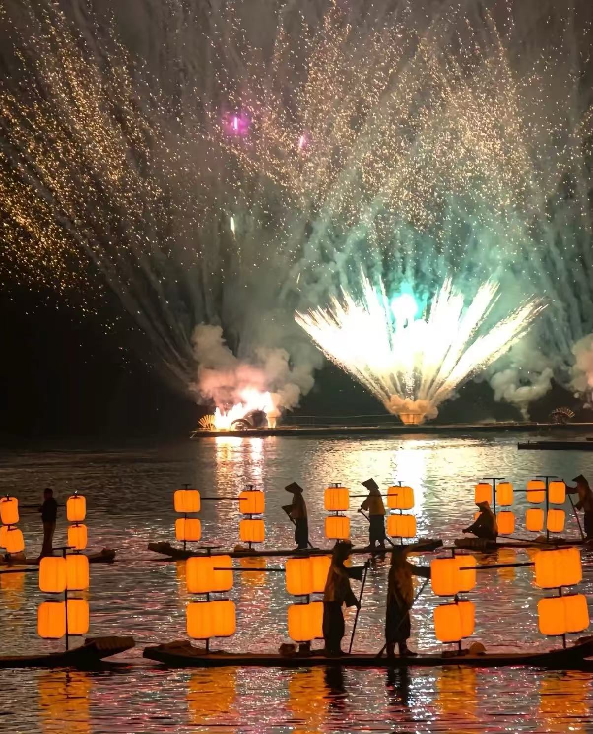 The stage is the Li River itself, surrounded by 12 Karst mountain peaks.