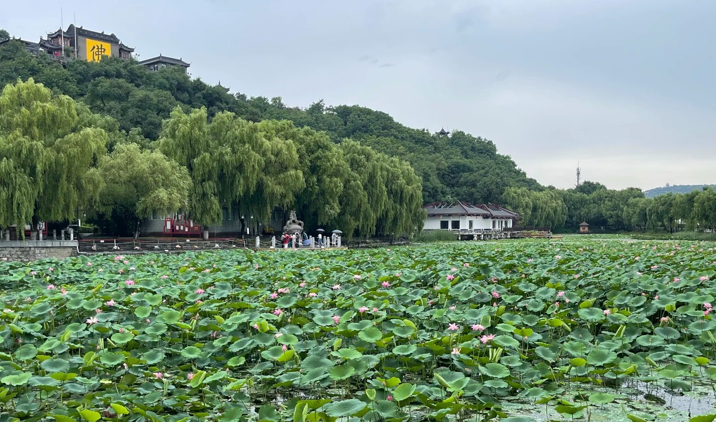 Start at the main entrance. Walk along the lake and enjoy the lotus views in summer.
