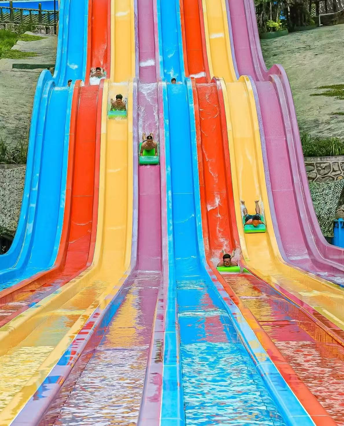 Rainbow Racer Slides: You race your friends down colorful slides. The finish line sits near the splash zone.