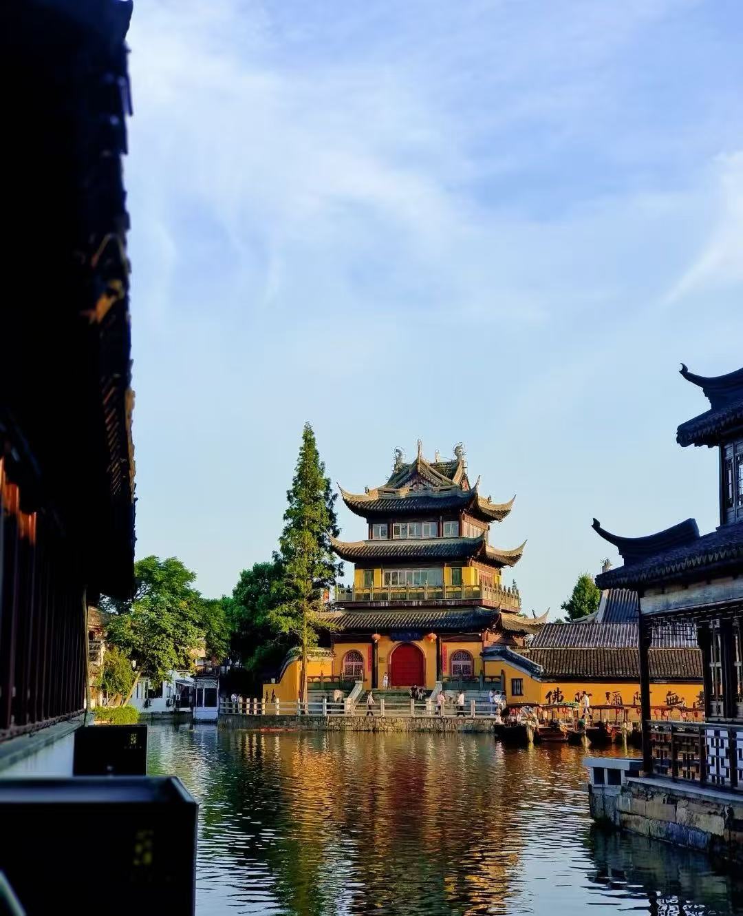 Yuanjin Buddhist Temple is one of the oldest places in zhujiajiao water town. The temple was built in 1341, during the Yuan Dynasty. It sits by the water and feels peaceful. You will see the Qinghua Pavilion, which is tall and easy to spot from many places in town.