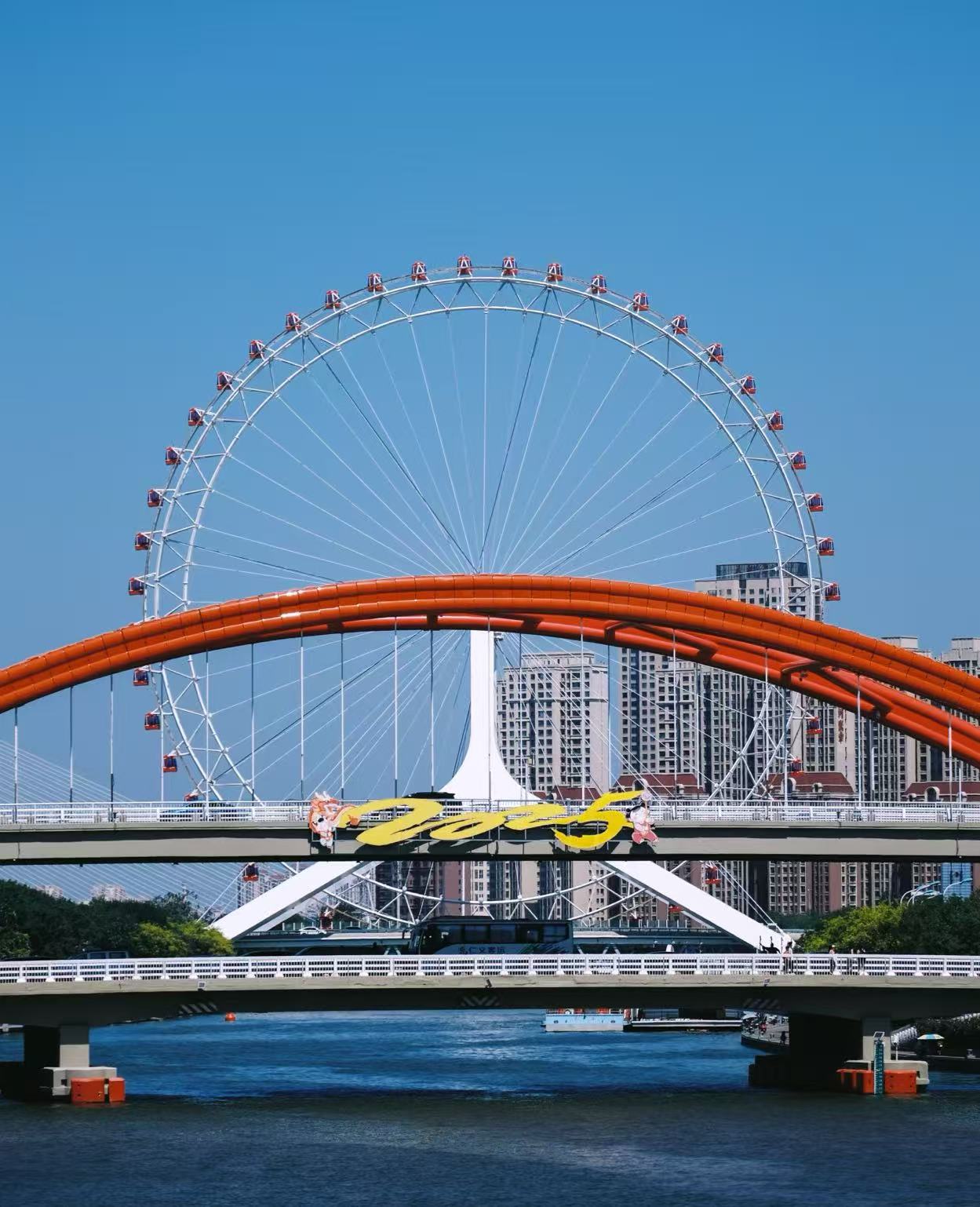 You see the tianjin eye & eye of china ferris wheel. Its huge size makes you feel amazed. The ferris wheel is 120 meters tall. It sits above the Haihe River on Yongle Bridge. No other ferris wheel is built over a bridge like this. The tianjin eye has a special support system. It uses three strong arms and a truss design. These help keep it safe and steady, even if there is an earthquake. There are 48 clear capsules on the wheel. Each capsule lets you see all around. You can look out for 40 kilometers. The cabins have air conditioning. You stay cool or warm inside, no matter the weather.