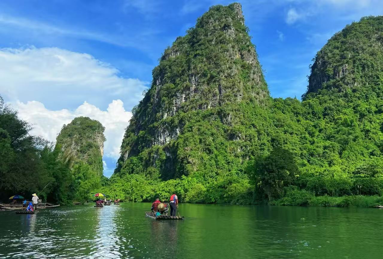Yulong River | A tributary with crystal-clear water reflecting karst peaks, ideal for bamboo rafting. |
