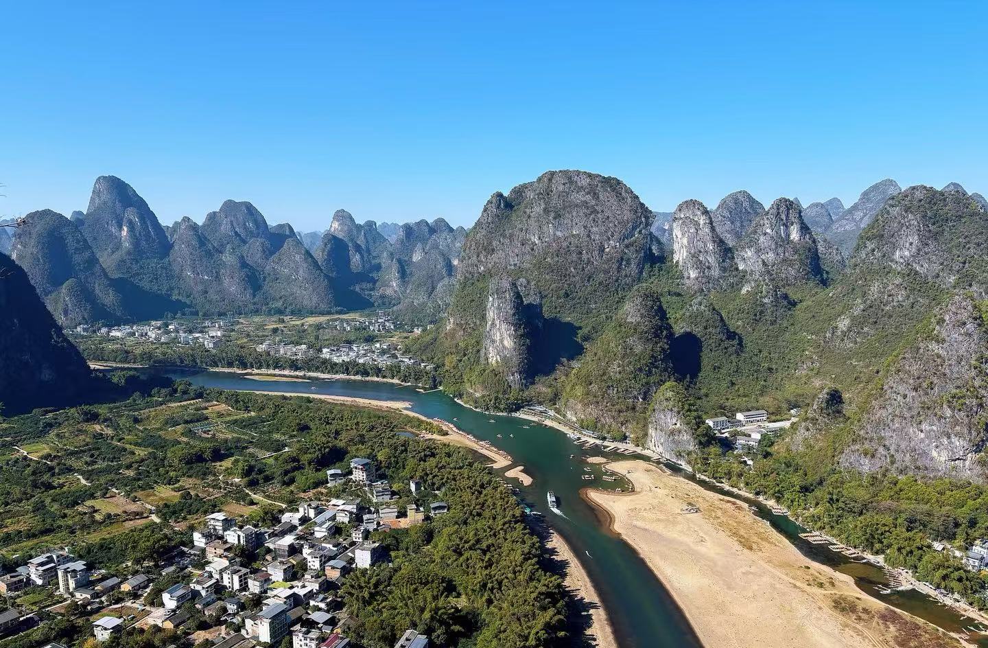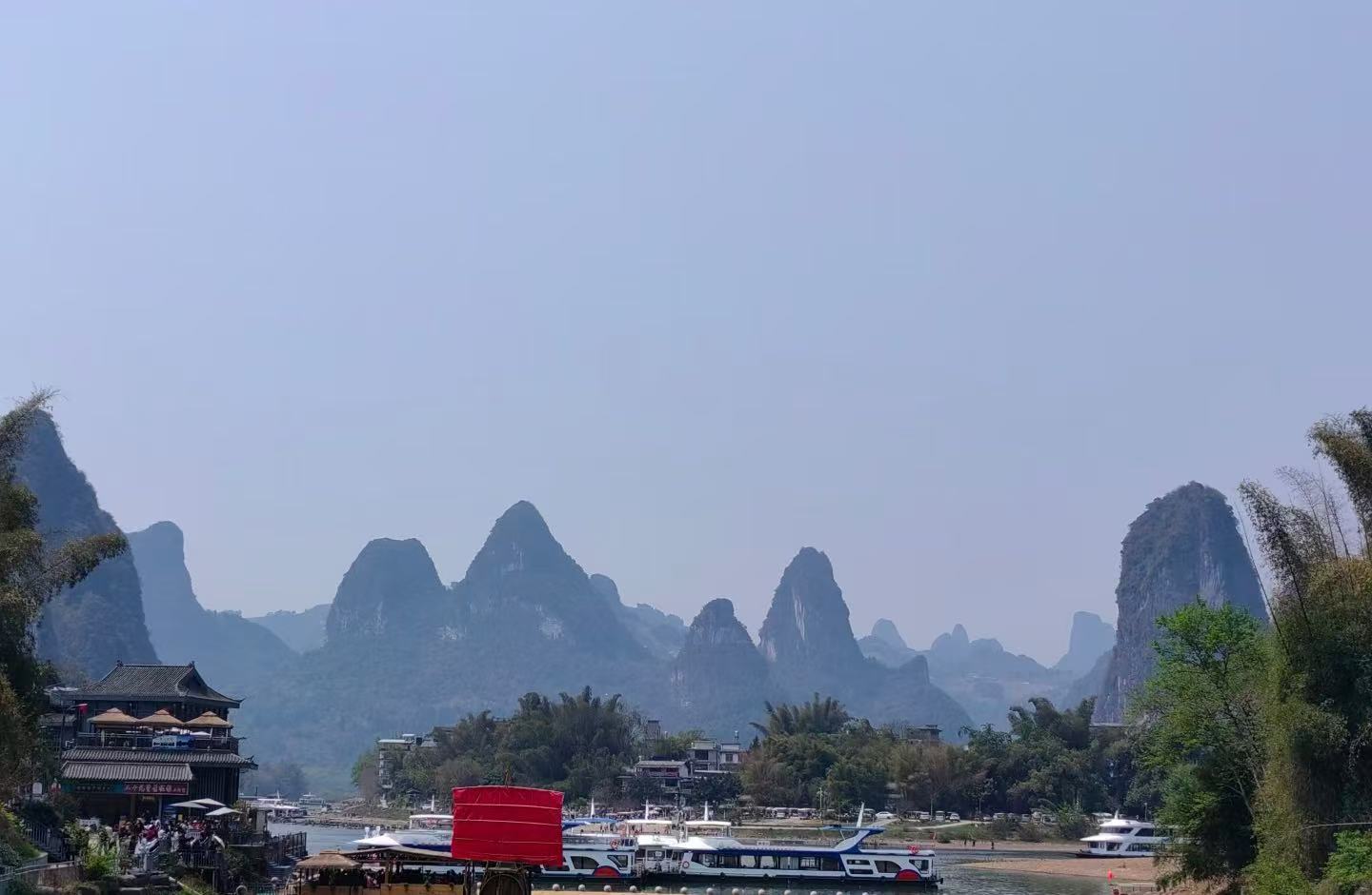 You can’t visit yangshuo without taking a Li River cruise. The river winds through green karst peaks and quiet villages. Early morning is the best time. The mist hangs low, and the water looks like a painting. Many travelers say the views from the boat are the highlight of their trip.