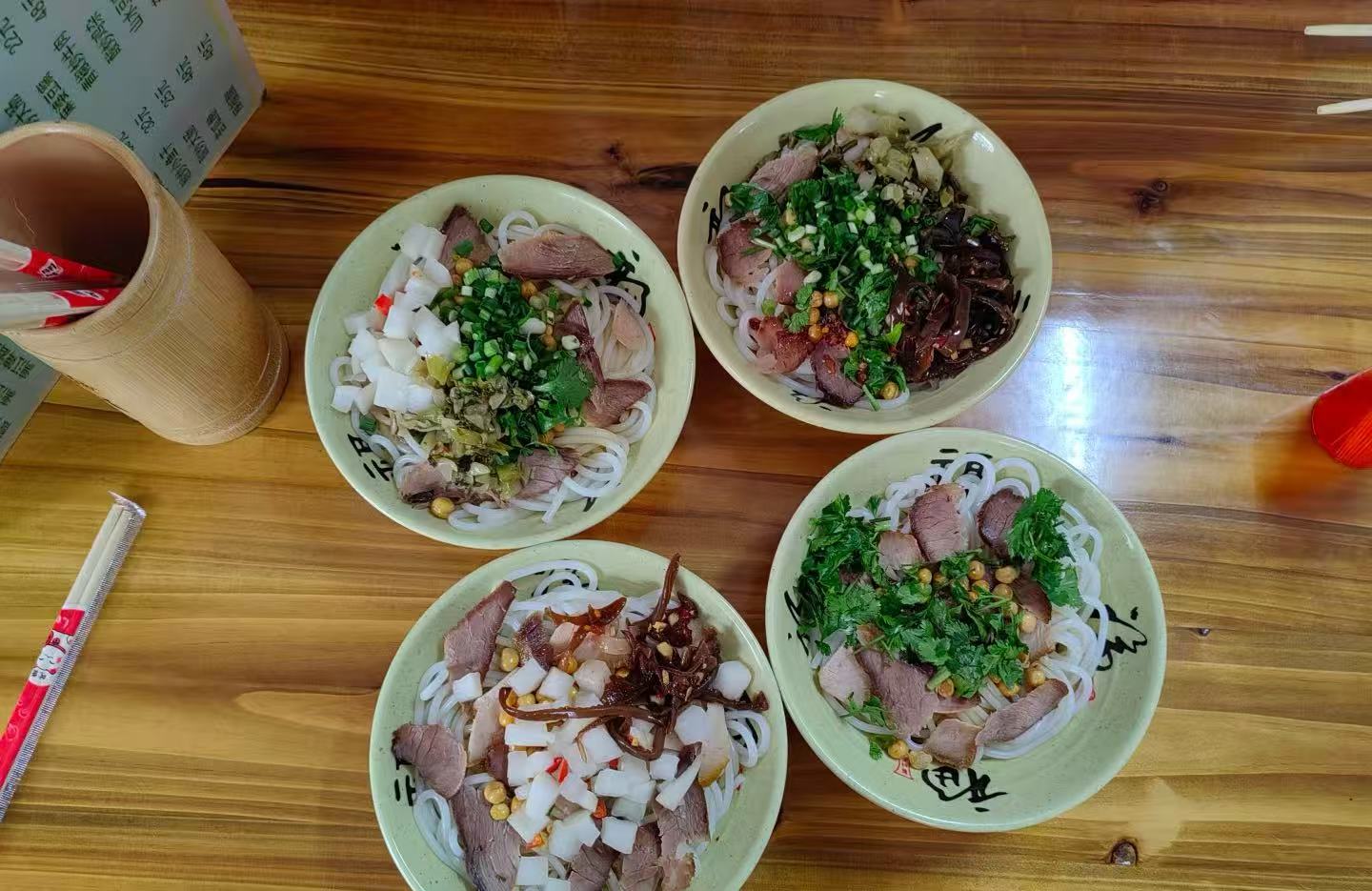 Guilin Noodles | Rice noodles topped with meats and pickles, a comfort food in Guangxi. |