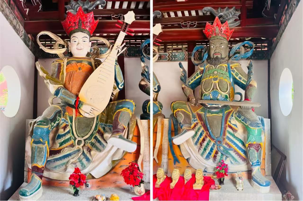Martial Temple | Guan Yu sits in the center, with Zhou Cang beside him. |